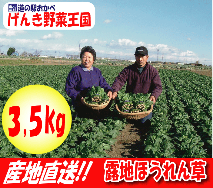 埼玉県深谷市産の霜ふり露地ほうれん草をお届けいたします!!おひたし、ごまあえ、バター炒めなどいろいろな料理に使える、この時季にしか味わえない逸品!!【メガ盛り】【露地ほうれん草3.5kg】甘さ抜群!! ![]() 価格: 1,500円 レビュー評価:0.0 レビュー数:0 露地ほうれん草 入数 露地ほうれん草 350g入り×10束 販売期間 11月上旬?2月中旬 発送注意 期日指定も受け付けますが、天候により収穫ができない時は発送日を予告なく遅らせることもございます。予めご了承ください。 Supported by 楽天ウェブサービス |